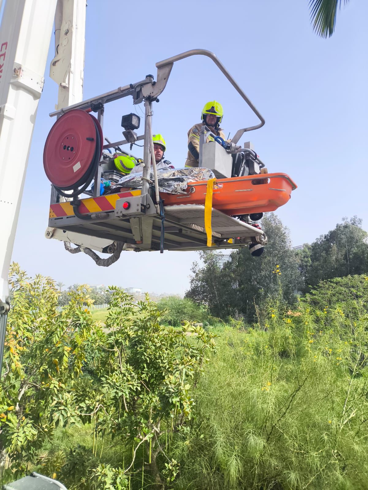 במהלך החילוץ, הוענק לפצוע טיפול רפואי מציל חיים בתוך סל המנוף על ידי צוותי הרפואה ולוחמי האש, וזאת תוך כדי הורדתו לקרקע. עם סיום פעולות החילוץ, הוא הועבר להמשך טיפול לידי גורמי הרפואה.