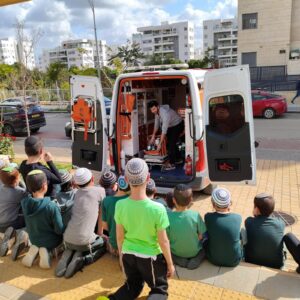 המתנדב שמריהו ירט הגיע לבית הספר, בו לומד בנו, וסיפר לתלמידים על פעילות הארגון בשגרה ובחירום. במהלך ההרצאה הסביר לילדים על “משולש החיים” והדגיש את חשיבות שיתוף הפעולה בין כלל הגורמים בזירת אירוע רפואי, תוך הסבר על הסכנה העלולה להיווצר כאשר אחד המרכיבים בשרשרת המענה אינו מתפקד.