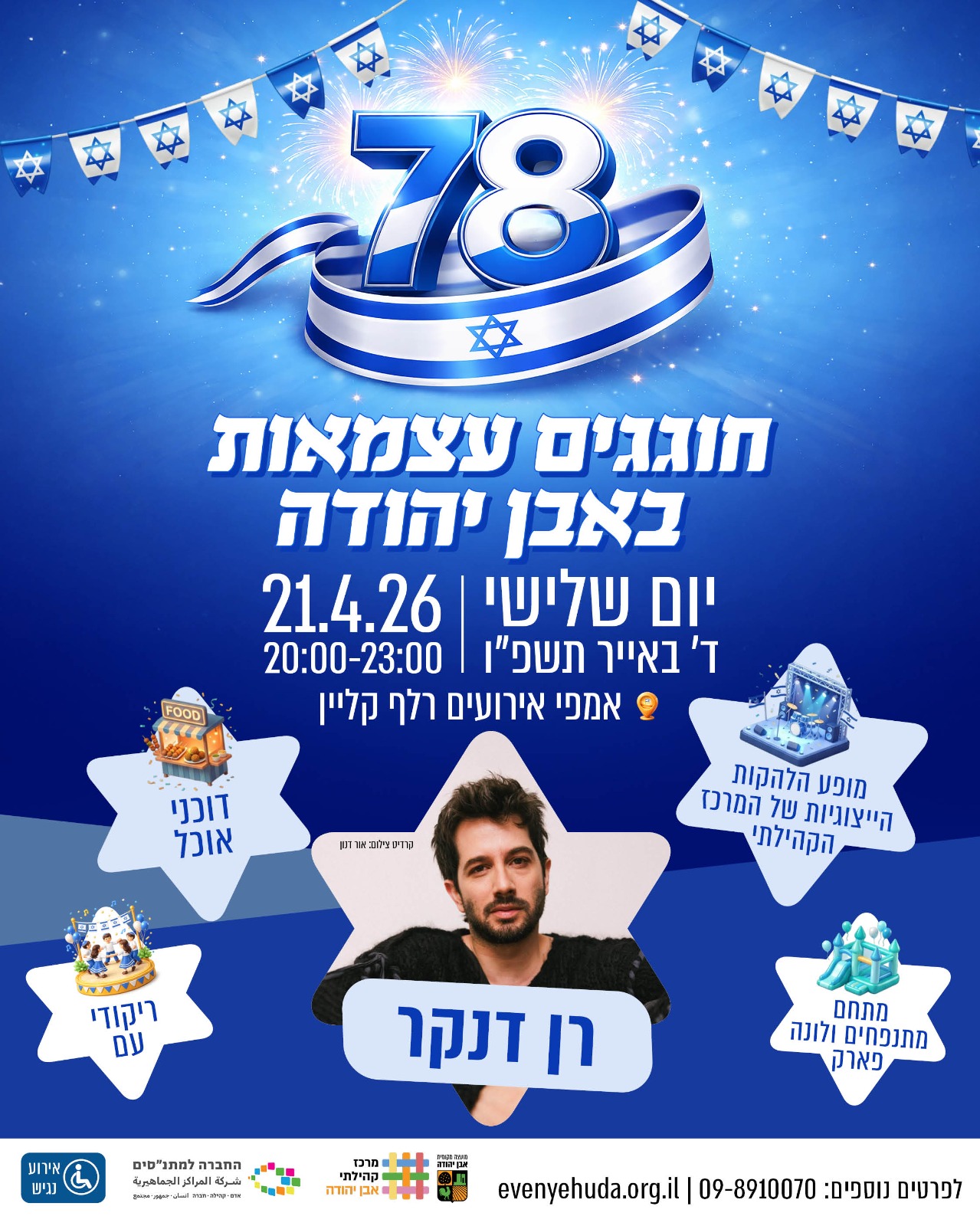 כזכור, ביום ראשון עדכן ראש המועצה המקומית מתן כצמן על החזרת אירועי יום העצמאות שבוטלו עקב המצב הביטחוני, וזאת בעקבות הכרזת הפסקת האש בצפון. "עשינו מאמץ ענק שזה יקרה- מחזירים את אירוע העצמאות המרכזי ובגדול", כתב. האירוע המרכזי יתקיים במרכז הקהילתי אבן יהודה. "חוזרים לחגוג יחד. חוזרים לנשום. חוזרים ללב של הקהילה", נכתב בהודעת המתנ"ס בפייסבוק, "אחרי תקופה לא פשוטה, עם לא מעט שינויים, דחיות ומציאות שמלמדת אותנו להיות גמישים כמעט כמו גומי מתוח, אנחנו שמחים לבשר: חזרנו לאירוע גדול! חוגגים עצמאות 78 למדינת ישראל בערב חגיגי, שמח ומלא אנרגיה באבן יהודה עם רן דנקר במופע מרכזי, לצד מתחמי פעילות לכל המשפחה".