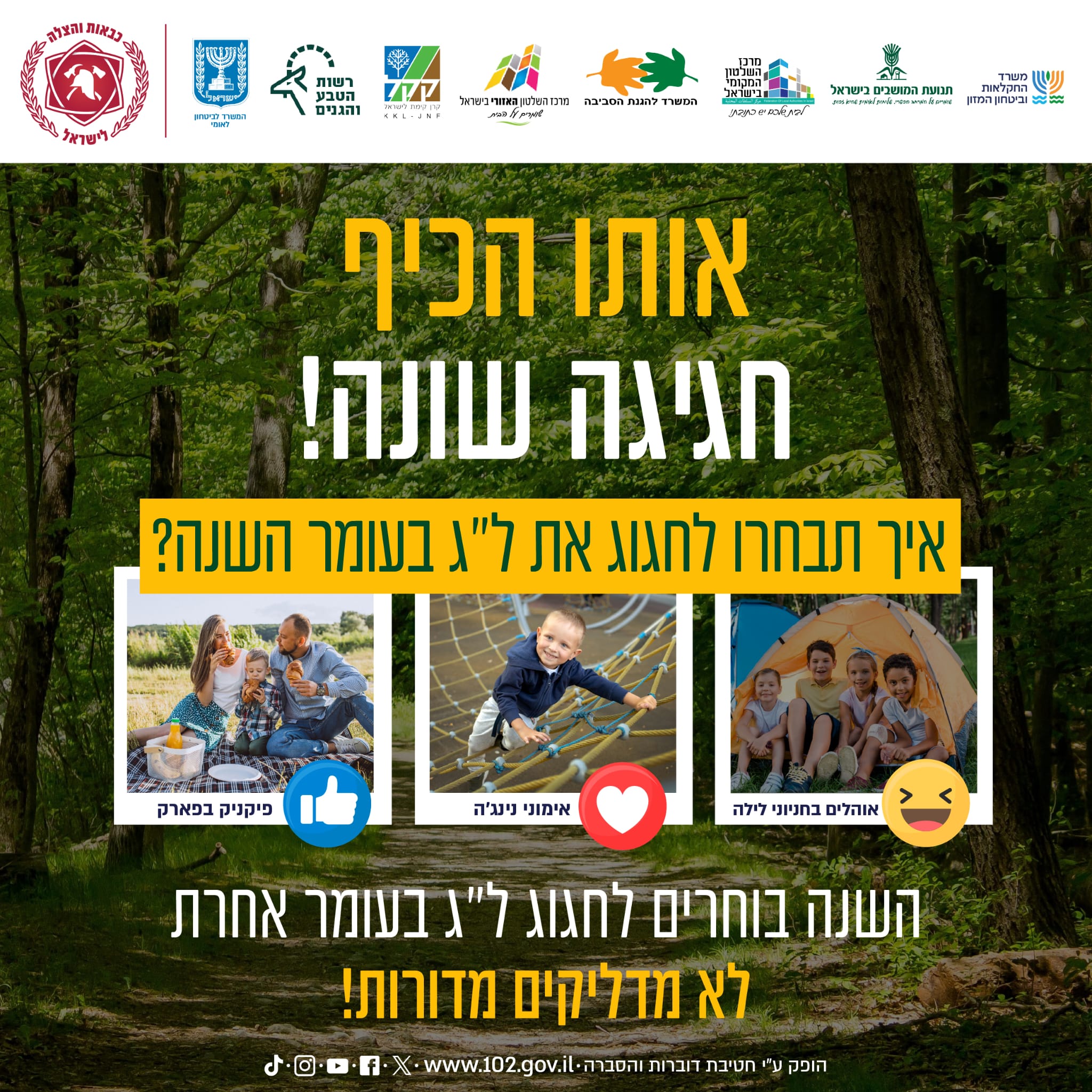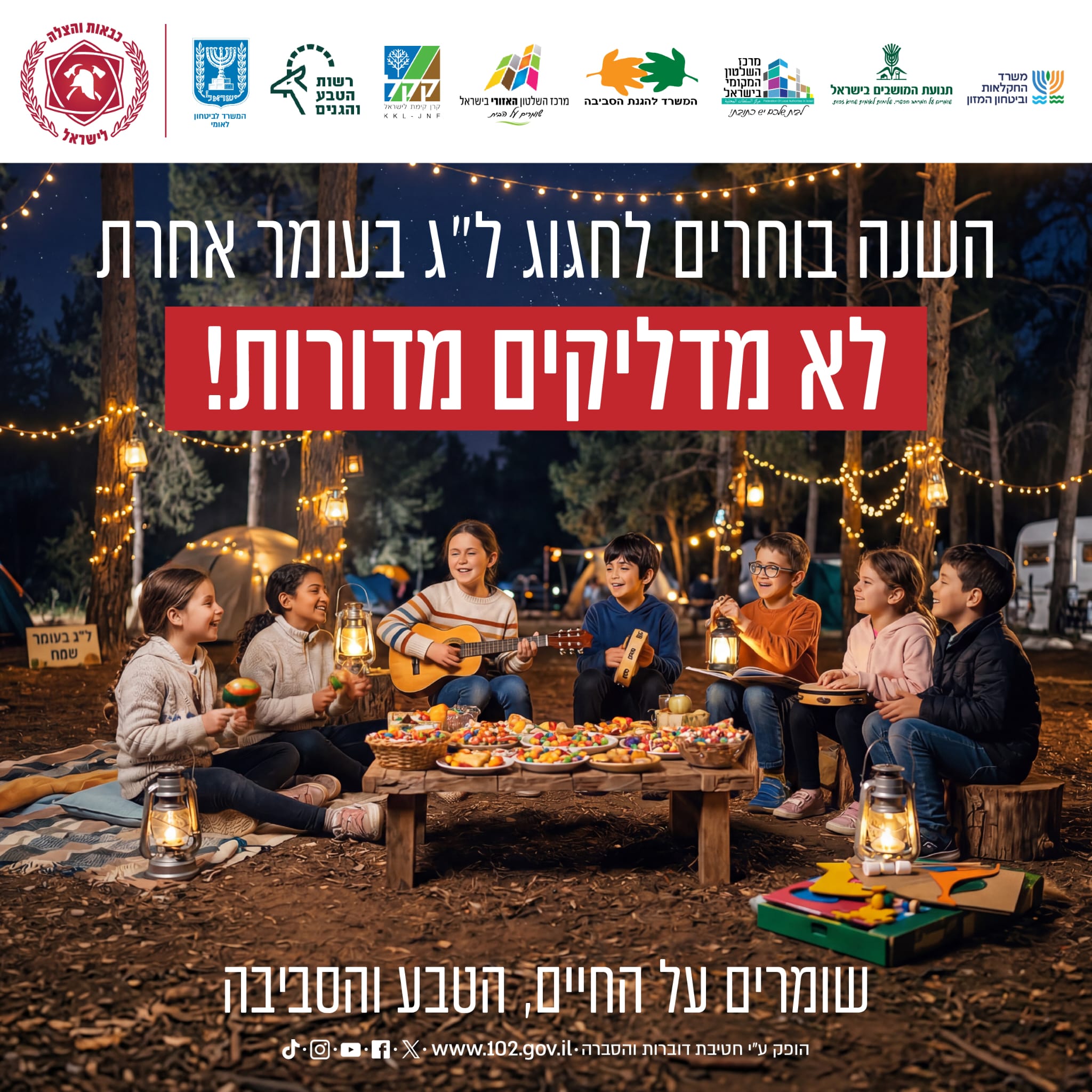 במד"א קוראים לציבור להישמע להנחיות כבאות והצלה ומזכירים כי חל איסור על הדלקת מדורות בשטח חורש, יער, שמורת טבע או בסמוך לאזורים מיוערים. המדורות יתקיימו רק במתחמים עירוניים מוגדרים שאושרו על ידי הרשויות המקומיות ובהתאם להנחיות פיקוד העורף.