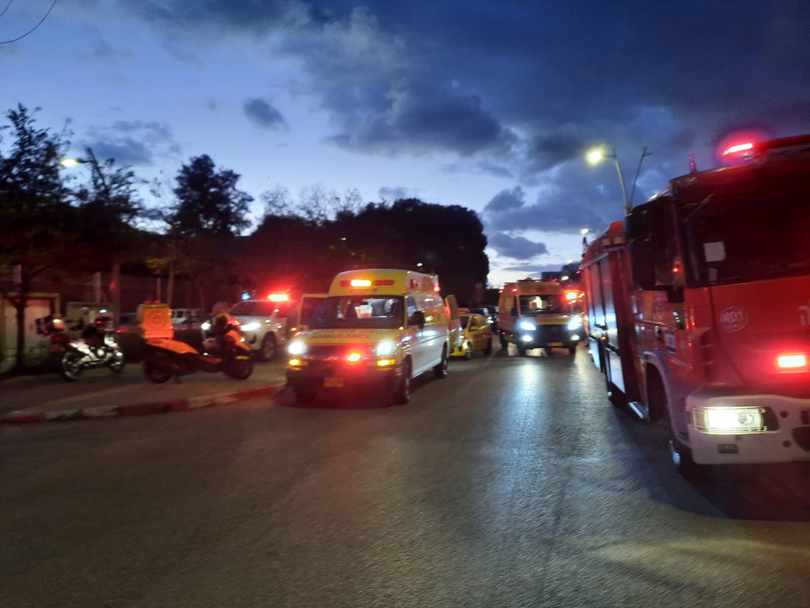 בשעה 16:33 התקבל דיווח במוקד 101 של מד״א במרחב שרון על האירוע. חובשים ופראמדיקים העניקו טיפול רפואי במקום ופינו לבית החולים הלל יפה חמישה נפגעים: אישה כבת 50 במצב בינוני עם חבלות בגפיים, וארבעה נפגעים נוספים במצב קל שסבלו מסימני שאיפת עשן.