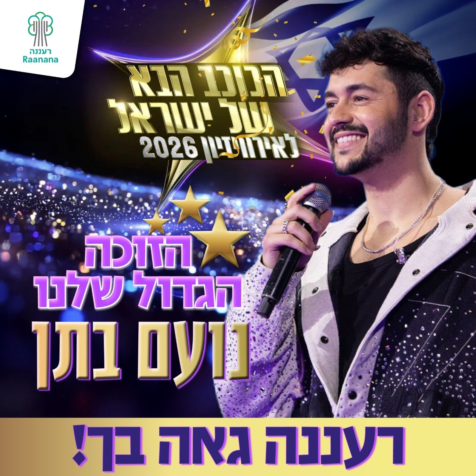 נועם בתן, יליד רעננה ותושב רמת השרון, נבחר אמש לייצג את ישראל באירוויזיון 2026 לאחר שזכה בגמר תכנית הטלוויזיה “הכוכב הבא לאירוויזיון”. בתן יעלה על הבמה הגדולה של תחרות הזמר הגדולה בעולם, שתתקיים השנה בווינה שבאוסטריה.