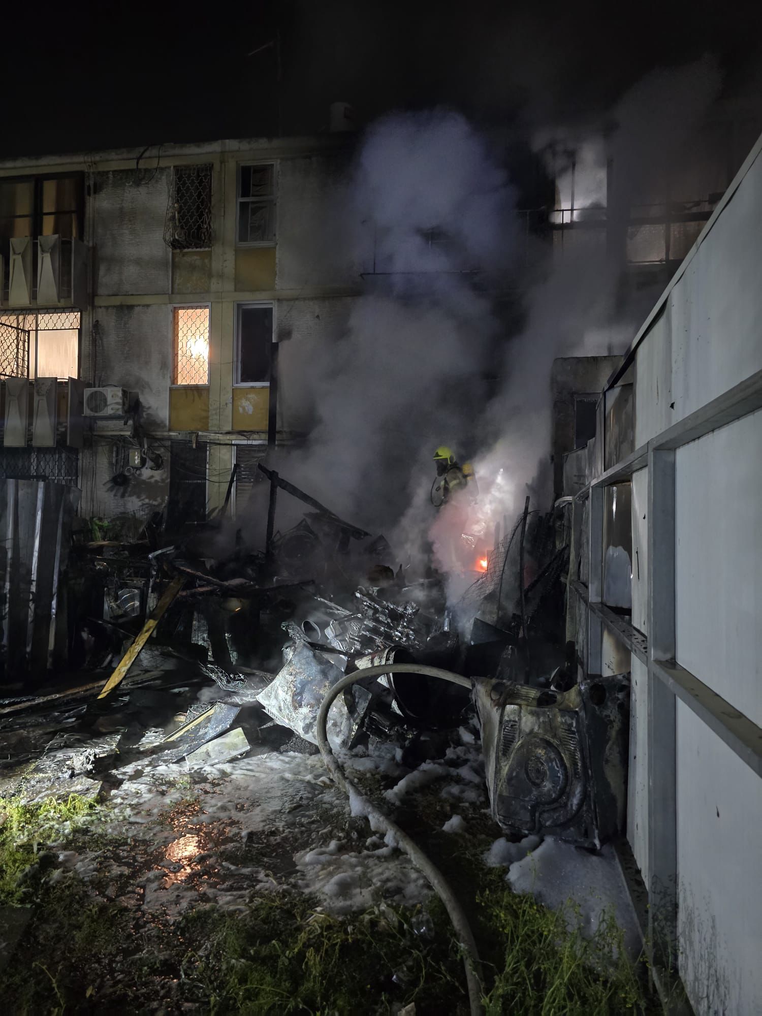 לוחמי האש השיגו שליטה על מוקד השריפה והמשיכו בפעולות קירור ואוורור למבנה.
