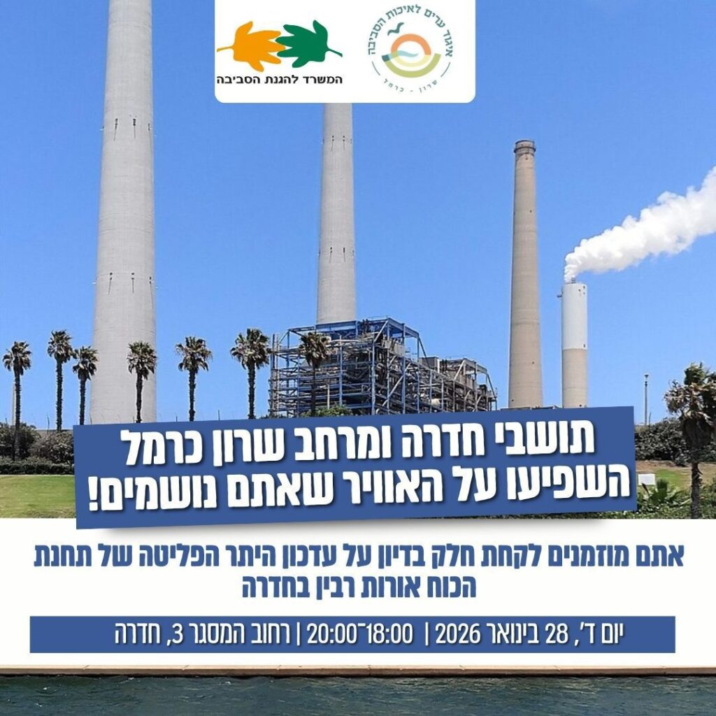 לקראת הדיון הציבורי בעדכון היתר הפליטה של תחנת הכוח אורות רבין, הודיע ראש עיריית חדרה, ניר בן חיים, כי ישיבת מועצת העיר מן המניין תתקיים במשרדי איגוד ערים לאיכות סביבה שרון–כרמל. ההחלטה התקבלה במטרה לאפשר לחברי מועצת העיר להשתתף באופן פעיל בדיון הציבורי, העוסק באחד הנושאים המרכזיים והרגישים ביותר עבור תושבי חדרה והאזור – בריאות […]