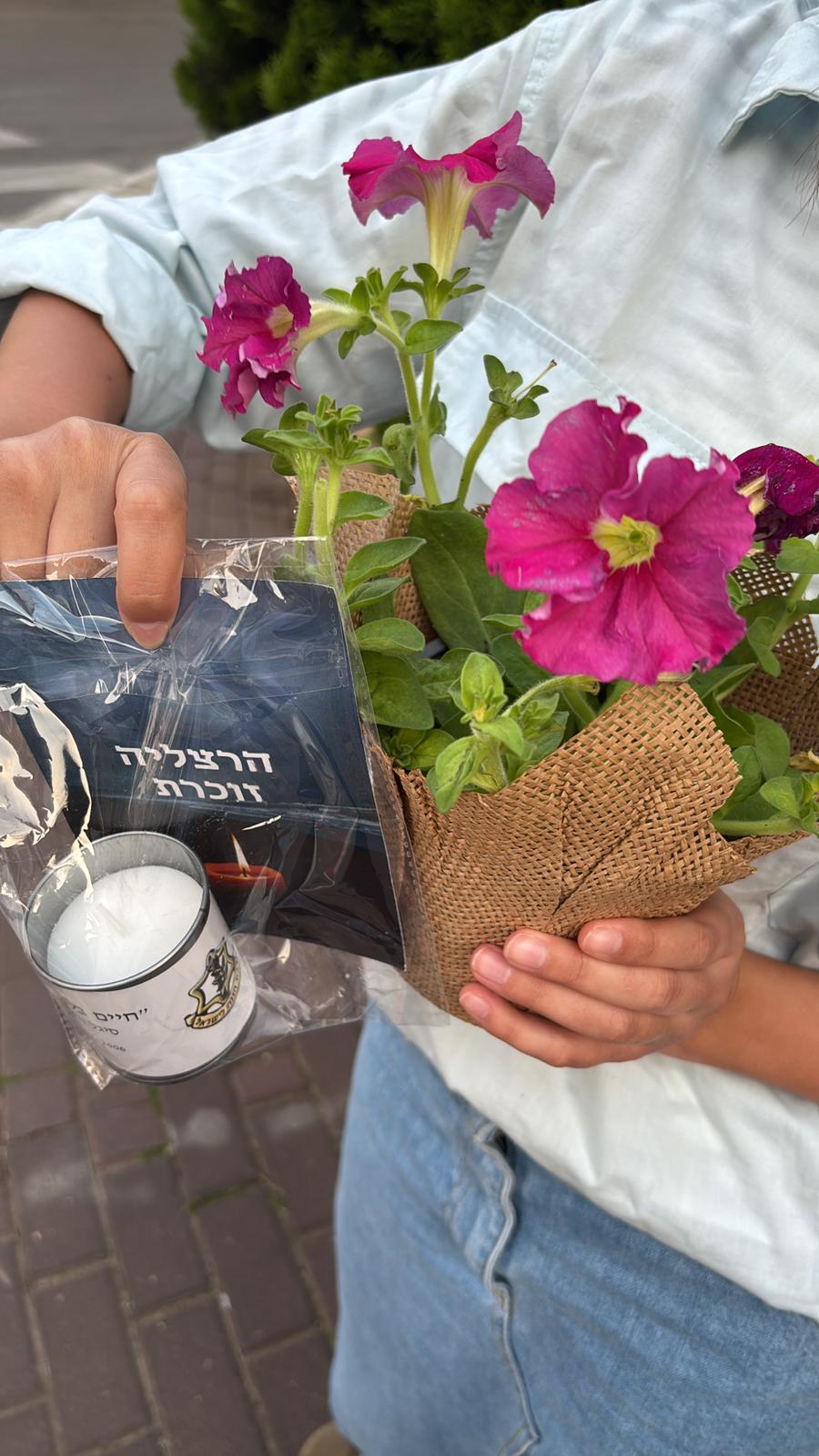 * חלוקות נר ועציץ למשפחות השכולות על ידי בני הנוער, מתנדבים ונציגי העירייה,
