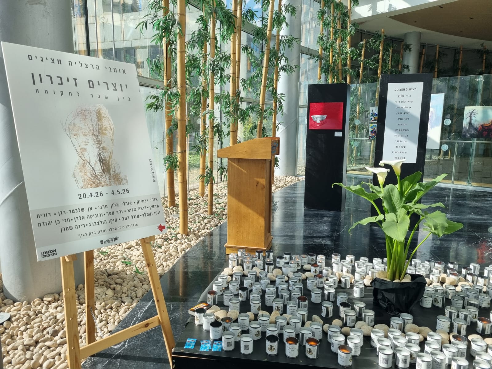 * תערוכת "יוצרים וזוכרים – בין שבר לתקומה" בכניסת בניין העירייה. התערוכה מציגה עבודות רב תחומיות של 12 יוצרות ויוצרים הרצליינים המתייחסים לנושא הזיכרון באמצעות דימויים המבטאים רגשות אישיים ולאומיים.
